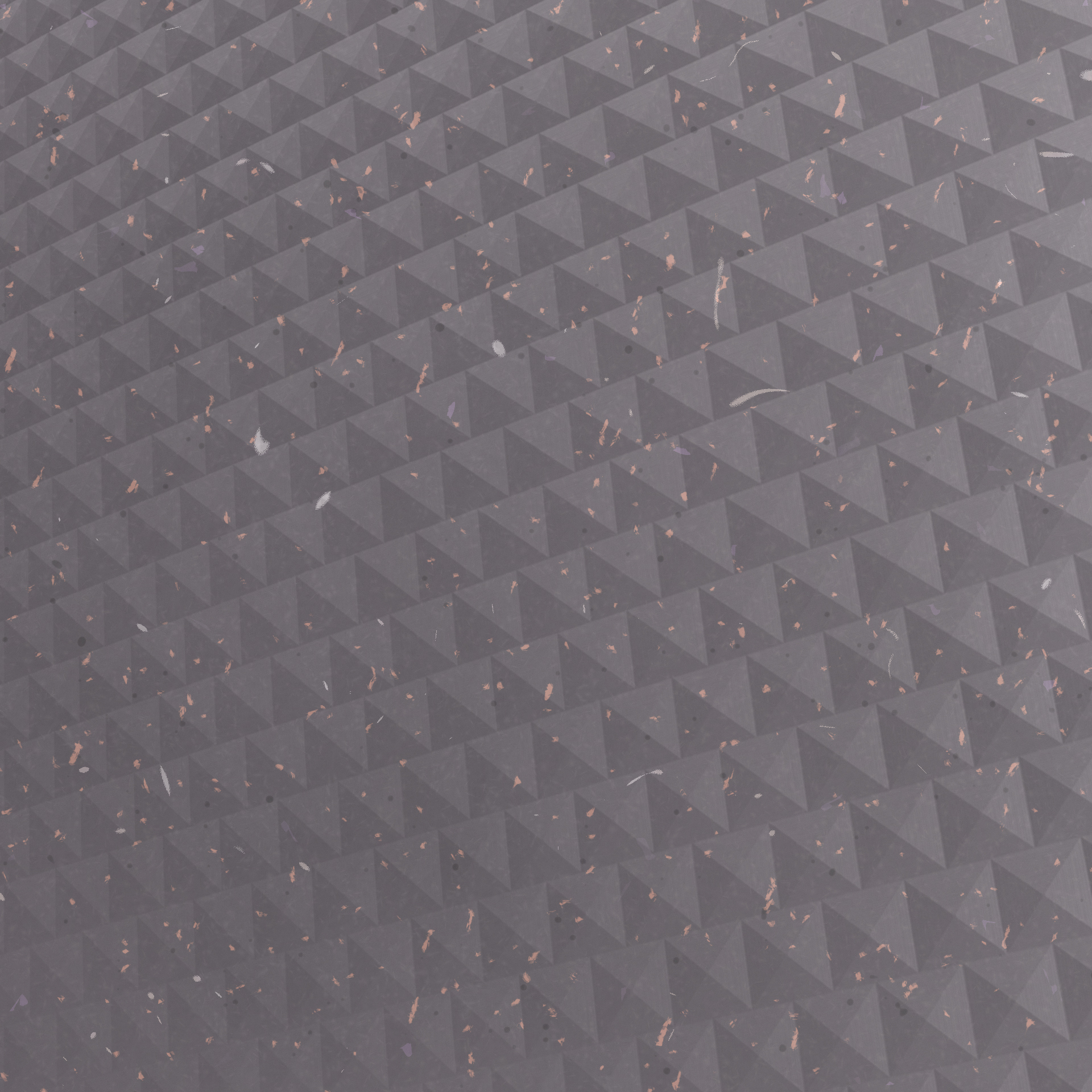Texture composta da piramidi a base quadrata sfalsate tra di loro. Una rilettura semplice e inaspettata delle classiche borchie, in grado di caratterizzarle con un maggiore dinamismo e un piglio più leggero.